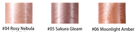 🌌Rosy Nebula (#04)This is a magical shade that combines a soft rosy tone with a hint of sparkle. It suits a wide range of skin tones, adding a romantic and mysterious glow. Ideal for evening events or date nights, Rosy Nebula makes your features stand out. And you don't have to worry about it melting into your base makeup; it stays in place, keeping you looking stunning throughout the night. 💖